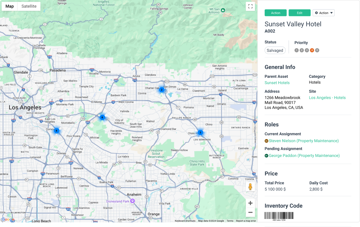 Map view provides a clear, visual overview of the physical locations of assets, making it easier to track and manage geographically dispersed assets.