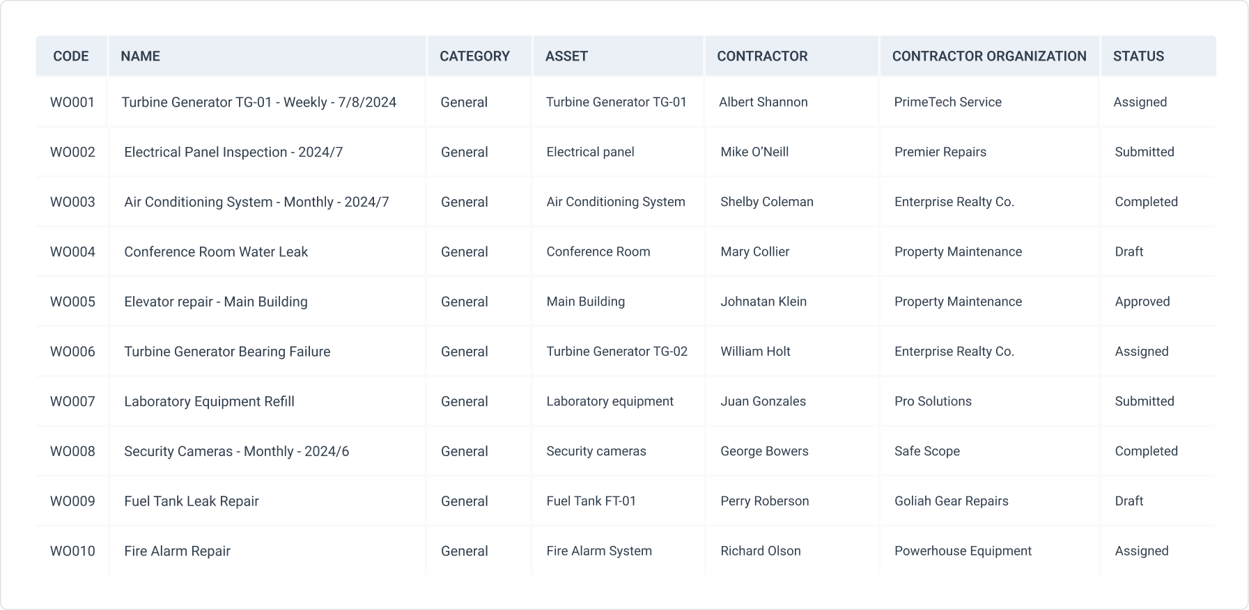 Keep track of work across your company by creating, scheduling, assigning and prioritizing work orders created from preventive maintenance and work requests.