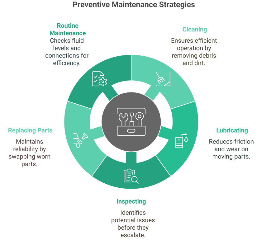 - Routine Maintenance: Routine maintenance includes regular tasks such as cleaning, lubricating, and inspecting equipment. These tasks are essential for keeping equipment in good working condition and preventing minor issues from escalating into major problems.