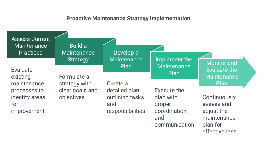 Implementing a proactive maintenance strategy requires a structured and systematic approach. The following steps can guide organizations in developing and executing an adequate proactive maintenance strategy: