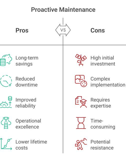 However, implementing proactive maintenance requires significant investment in training, technology, and organizational culture change.