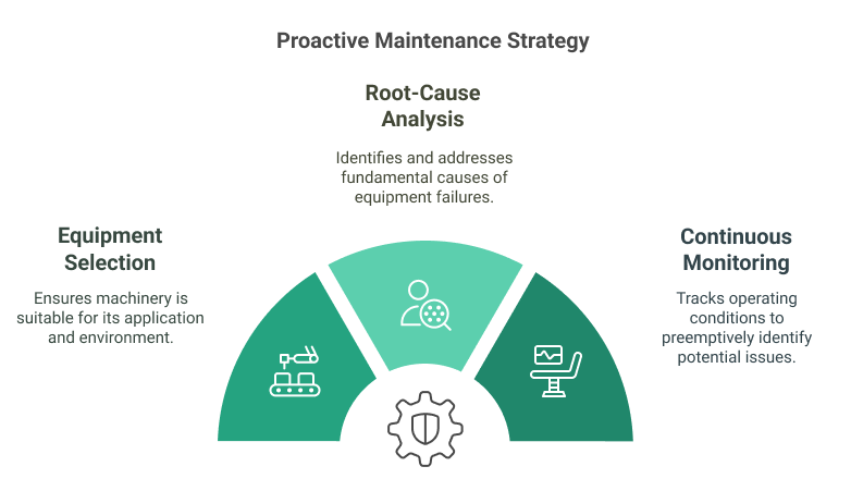 Proactive maintenance treats the underlying causes rather than the symptoms of equipment problems. Just as modern medicine emphasizes preventing disease by addressing root causes like diet and lifestyle rather than treating symptoms, proactive maintenance eliminates the basic conditions that lead to equipment failure.